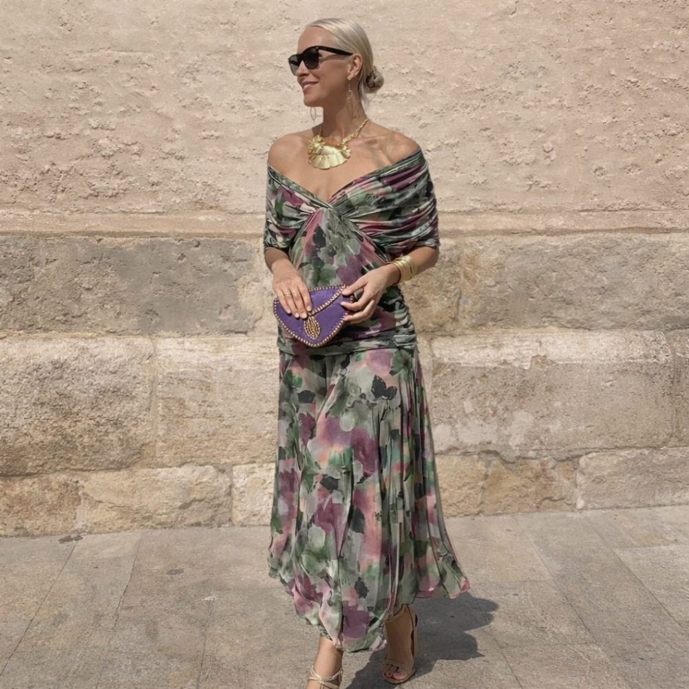 The flowing cut moves lightly with you, creating that subtle elegance that draws attention without effort.